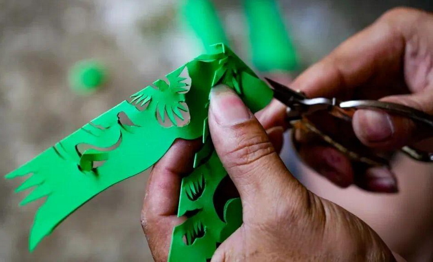 許喬和,云南省德宏州隴川縣戶撒鄉(xiāng)人,他是一名縣級阿昌族剪紙非遺傳承人,阿昌族剪紙?jiān)谒讣獾玫胶霌P(yáng)和提升。他用一把普通的剪刀,將阿昌族的文化故事剪得惟妙惟肖。